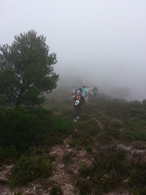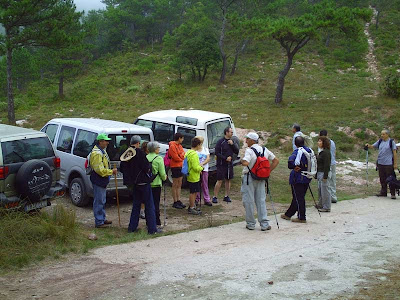 Avui anem a la Mola de Colldejou, una de les muntanyes mes emblemàtiques del Baix Camp. Arribem al Coll del Guix amb els cotxes des de Colldejou. Tot i que fa un dia molt xafogós, hi ha molta boira i no es veuen les capçaleres de les muntanyes. A veure com es presentarà el dia!.